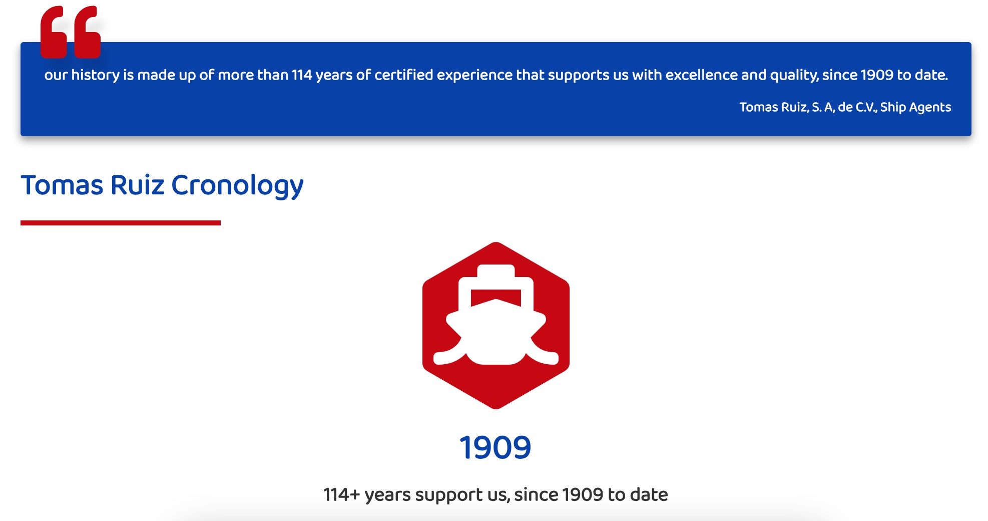 Tomas Ruiz was founded in 1909 and initiated operations in Coatzacoalcos Port, in Coatzacoalcos, Veracruz, where our Main Office is located today. Since its foundation Tomas Ruiz has been managed by owners and today two of the third generation and one of the fourth are working on a day by day basis.